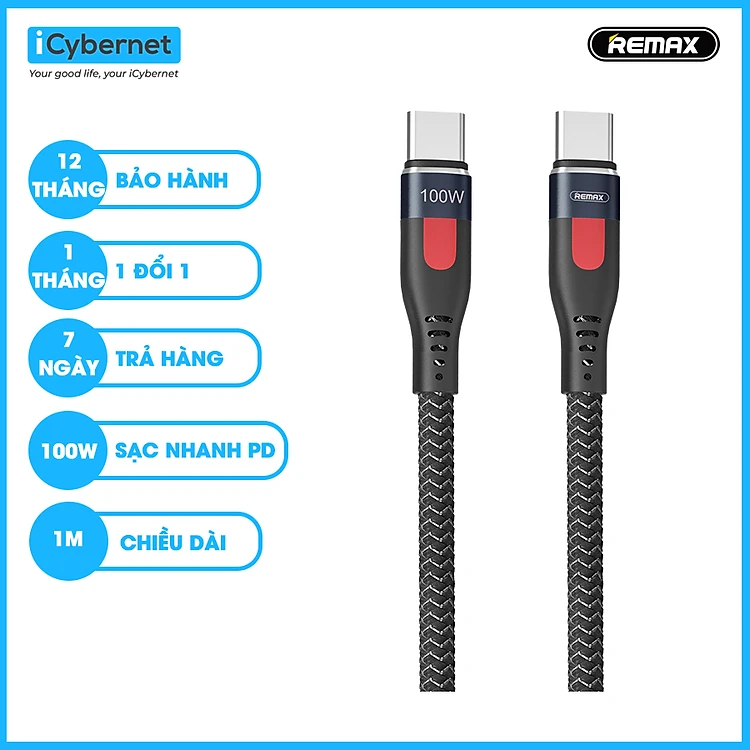 Cáp sạc siêu nhanh công suất tối đa 100W chuẩn PD Remax Lesu Pro typeC to typeC RC-187c - Hàng chính hãng
