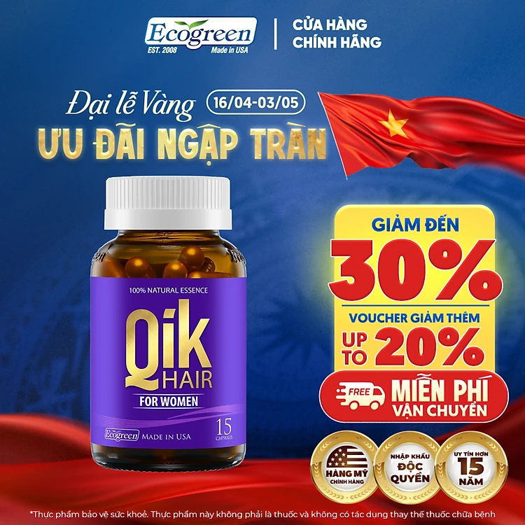 [Hộp 15v] Viên Uống Kích Thích Mọc Tóc Qik Hair For Women Ecogreen Giảm Rụng Tóc Cho Nữ