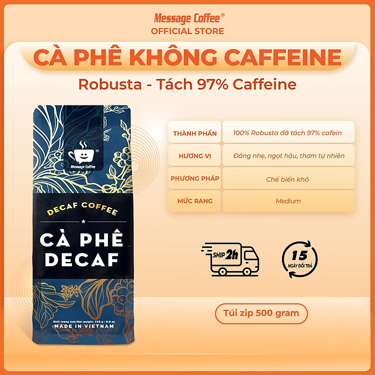 Cà Phê Decaf Robusta tách 97% cafeine vị đắng nhẹ, thơm thích hợp với người dùng cà phê bị mất ngủ hay say cafe từ Message Coffee - Gói 200 Gram - Nguyên Hạt