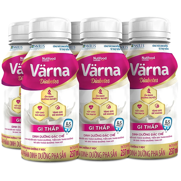- Thực phẩm dinh dưỡng y học Värna Diabetes với công thức đặc chế dưới sự giám sát của Viện Nghiên Cứu Dinh Dưỡng NutiFood