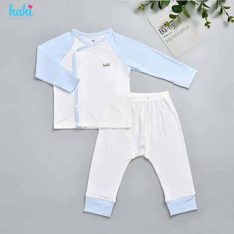 Bộ quần áo sơ sinh cài chéo, tay raglan phối màu vải Bamboo cao cấp Haki BB036, set dài tay cho bé trai bé gái từ 2,5 - 8kg, bộ sơ sinh sợi tre cho bé hàng chính hãng HAKI