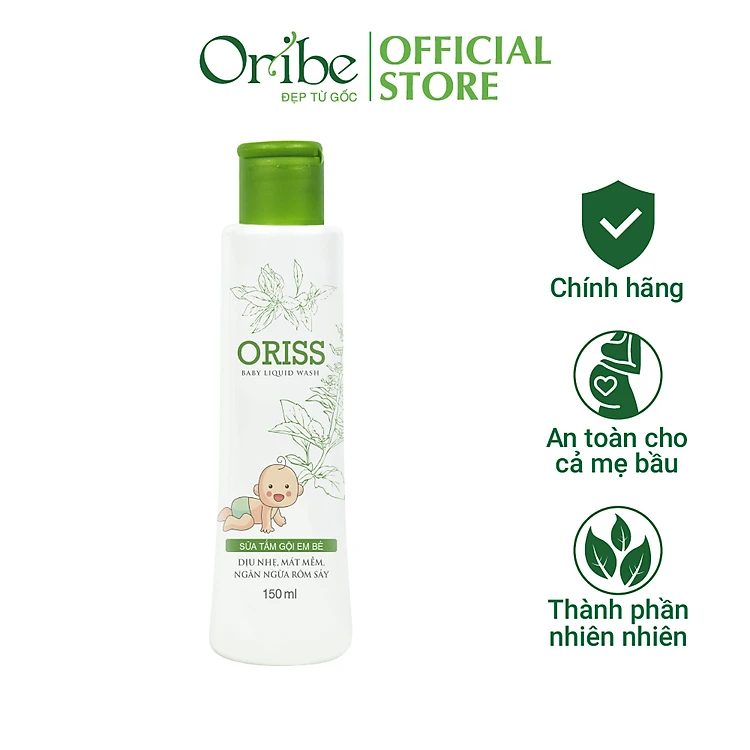 Sữa tắm gội hằng ngày cho bé dịu nhẹ không cay mắt hỗ trợ trị rôm sẩy Oriss Baby (chai 150ml)