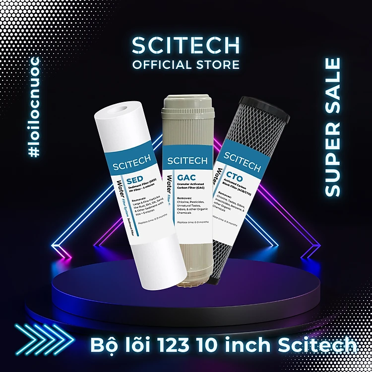 Bộ lõi lọc nước số 1,2,3 (PP-UDF-CTO) 10 inch dùng trong máy lọc nước RO, bộ lọc thô - Hàng chính hãng