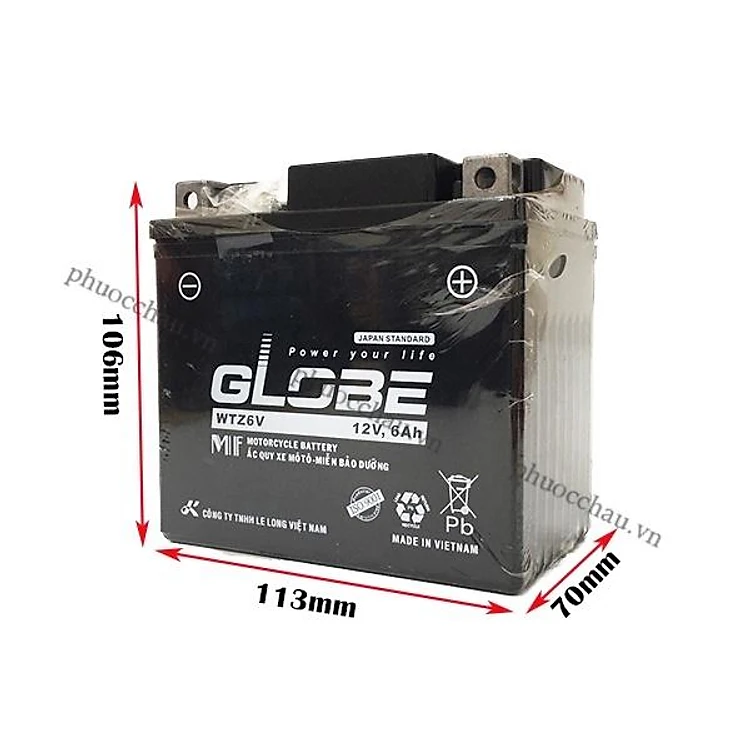 Bình Ắc Quy Khô Xe Máy GLOBE WTZ6V 12V6AH dùng cho NOZZA, AirBlade, SH MODE, SH Việt Nam