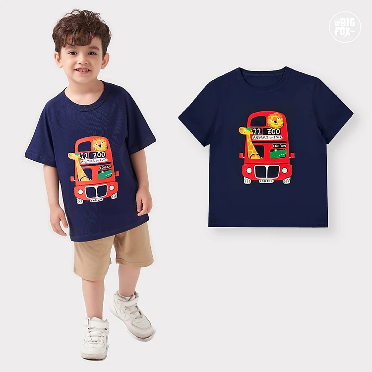 Áo cộc tay bé trai BIGFOX - MISS MEOW size đại mặc nhà mùa hè, áo phông cho bé trai chất cotton phong cách Âu Mỹ cỡ 3-8 tuổi 10 - 26 kg QATE 01