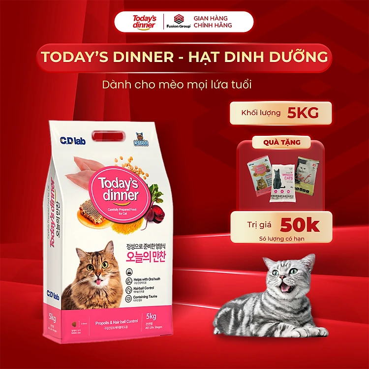 [ 5KG ] - Today's diner hạt thức ăn cho mèo mọi lứa tuổi MUA 1 TẶNG 5 SAMPLE WONDERCAT
