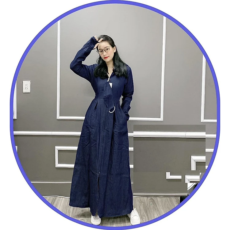 Áo chống nắng toàn thân nữ vải bò Jean 2 lớp dài kín chân - ao chong nang toan than nu vai bo 2 lop