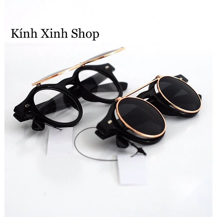 Kính Râm Nam Nữ Mắt Tròn 2 Tròng Mở Nắp 2in1 Gọng Nhựa Đi Ngày và Đêm