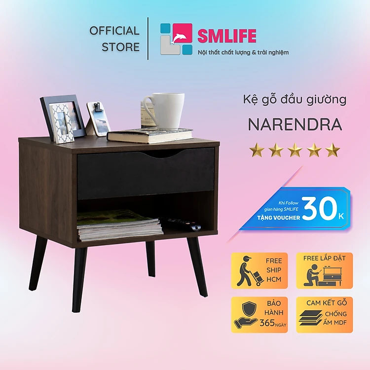 Kệ Đầu Giường Nhỏ Gọn Thiết Kế Đa Năng SMLIFE Narendra