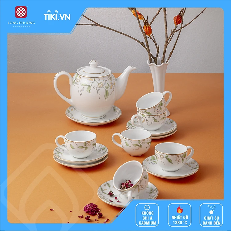 Bộ ấm trà phình thon hoa 014 họa tiết hoa Ngọc Diệp