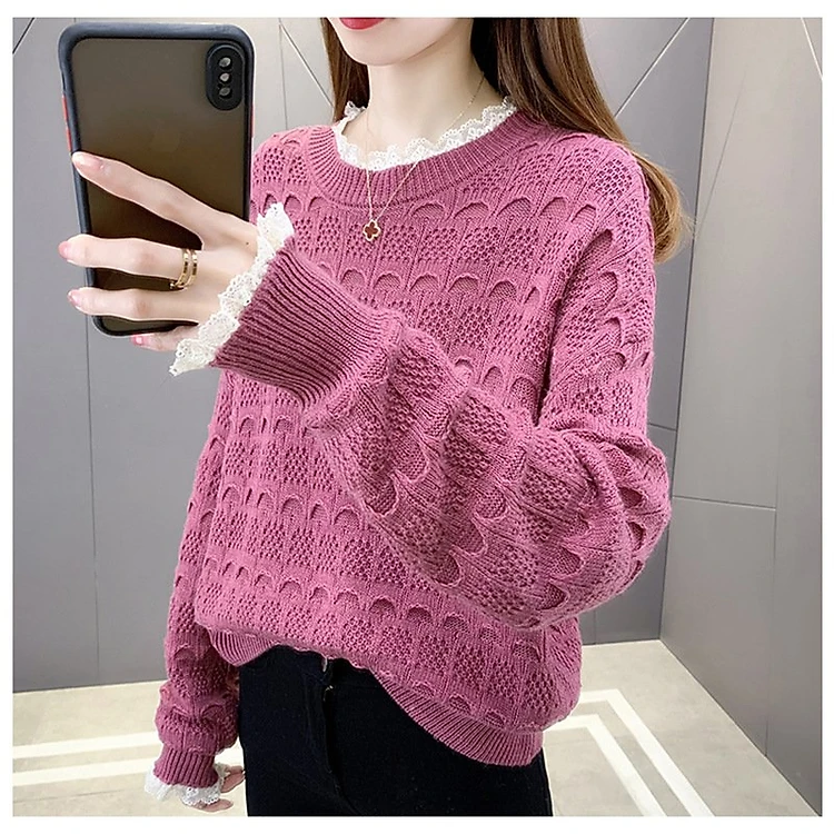 Áo len nữ Haint Boutique thiết kế dài tay phối ren nữ tính al27