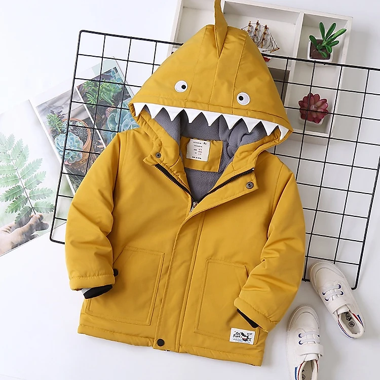 Áo khoác bé trai 3-12 tuổi hình cá Mập bên trong lót lông