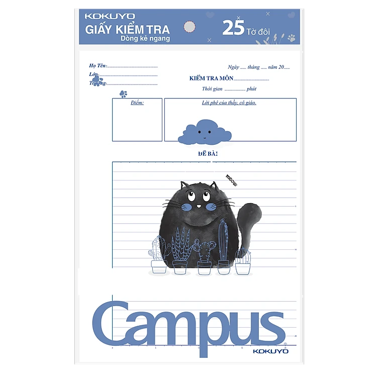 Giấy Kiểm Tra Campus Kẻ Ngang Khổ B5 25 Tờ Đôi/Túi