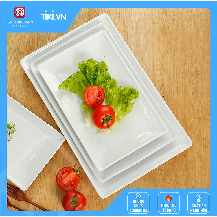 Khay chữ nhật Đĩa sứ hình chữ nhật cao cấp Long Phương