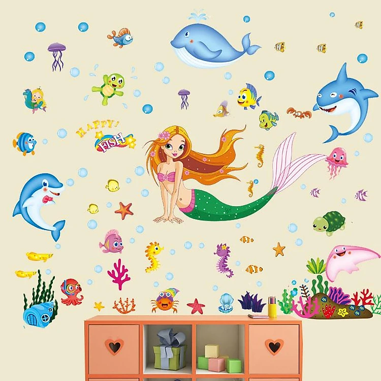 [ Size Lớn ] Decal dán tường kết hợp Nàng tiên cá và những người bạn LC7082+XL7159