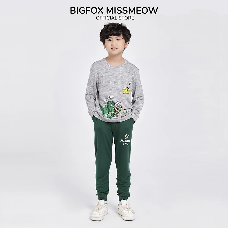 Bộ bé trai BIGFOX - MISS MEOW thu đông, bộ dài tay cho bé phong cách Âu Mỹ in khủng long 12 - 43kg