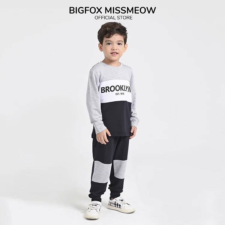 Bộ dài tay bé trai BIGFOX - MISS MEOW size đại, bộ thu đông cho bé phong cách Âu Mỹ phối 3 màu Brooklyn 11 - 38kg