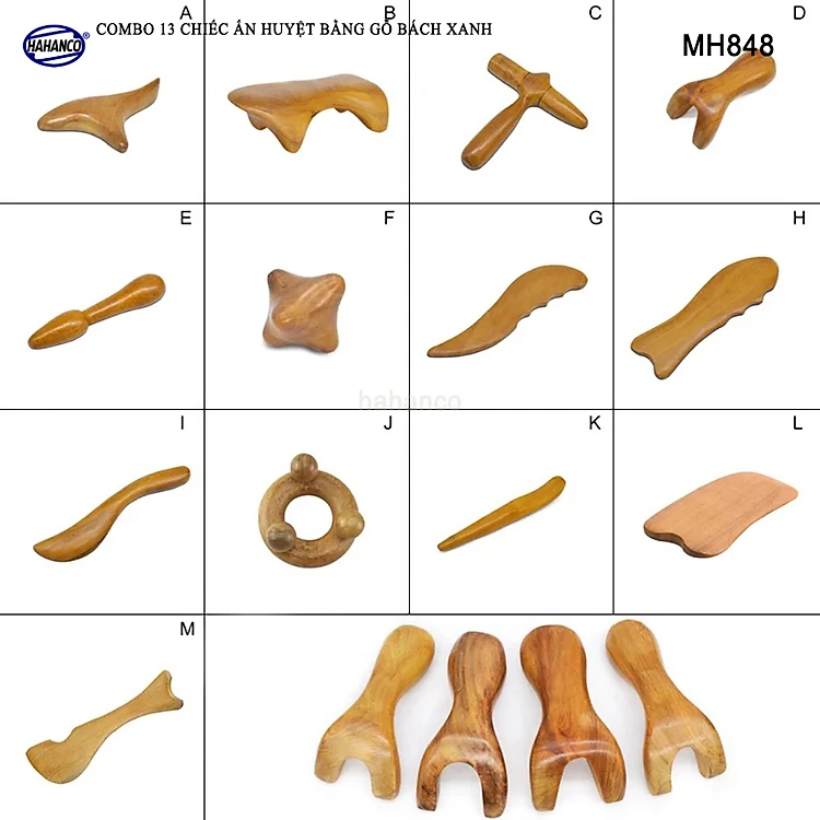 COMBO bộ 13 Dụng Cụ day ấn Huyệt Mát xa toàn thân kiểu Thái bằng gỗ Bách Xanh (MH848) Chăm sóc sức khỏe