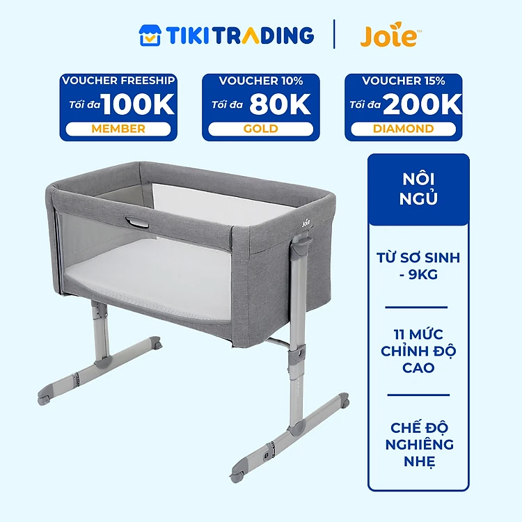 Nôi ngủ cạnh giường Joie Roomie Glide Foggy Gray