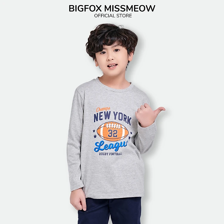 Áo bé trai BIGFOX - MISS MEOW thu đông, áo thun dài tay cho bé size đại in hình bóng bầu dục Newyork 11 - 38 kg