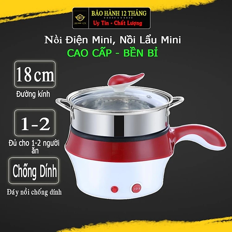 Nồi Lẩu Mini, Ca Nấu Mì 2 Tầng Mini Tặng Kèm Vỉ Hấp Đa Năng, Chiên, Hấp, Lẩu, Rán Tiện Dụng