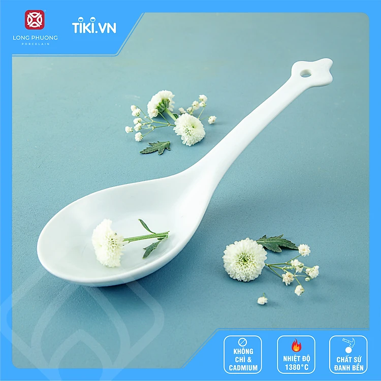 Muôi thẳng cán hoa, thìa canh, thìa cơm sứ Long Phương