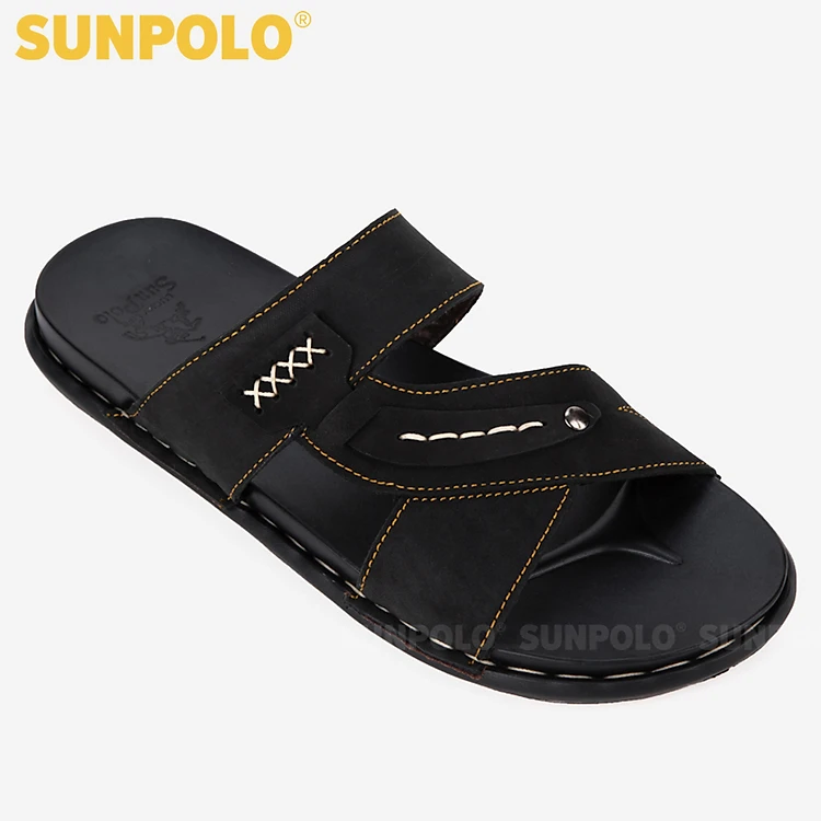 Dép Quai Ngang Nam Da Bò SUNPOLO SNA102 Trẻ trung, Năng động (Đen, Nâu bò)