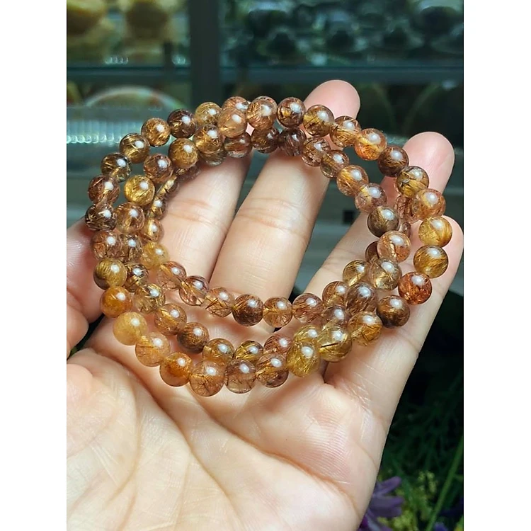 Vòng đeo tay, lắc tay phong thủy đá thạch anh tóc vàng nâu quấn 3 vòng