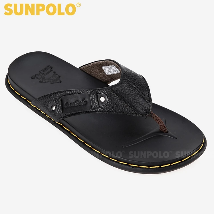 Dép Kẹp Xỏ Ngón Nam Da Bò SUNPOLO KEP204 Êm nhẹ (Đen)