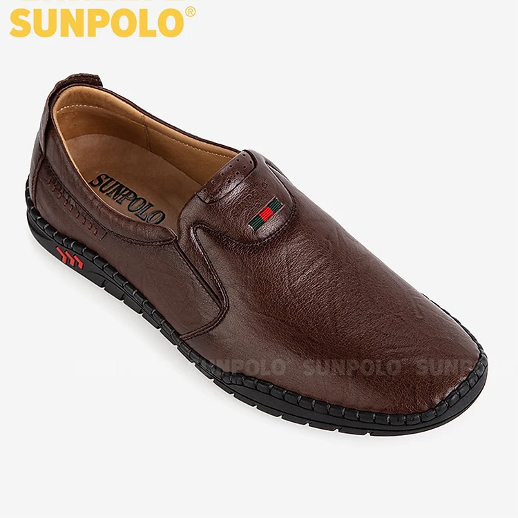 Giày Mọi Nam Da Bò SUNPOLO SU5055 Đế may khâu bền bỉ (Đen)