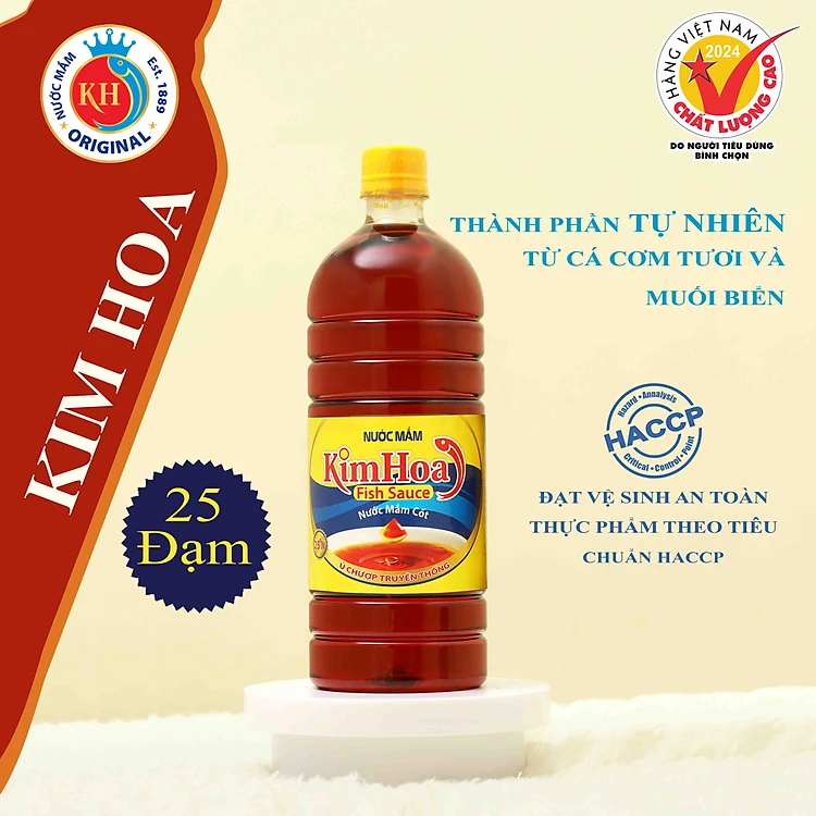 Nước Mắm truyền thống Kim Hoa Phú Quốc 25 độ đạm chai 1 Lít