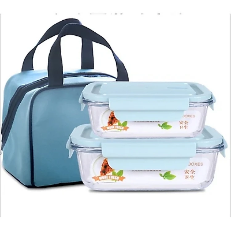 Bộ 2 Hộp Cơm Văn Phòng, Chất Liệu Thủy Tinh Chịu Nhiệt Tốt, Nắp Nhựa PP Cao Cấp An Toàn Sức Khoẻ Kèm Túi Xách Tiện Lợi- Hàng Chính Hãng MINIIN