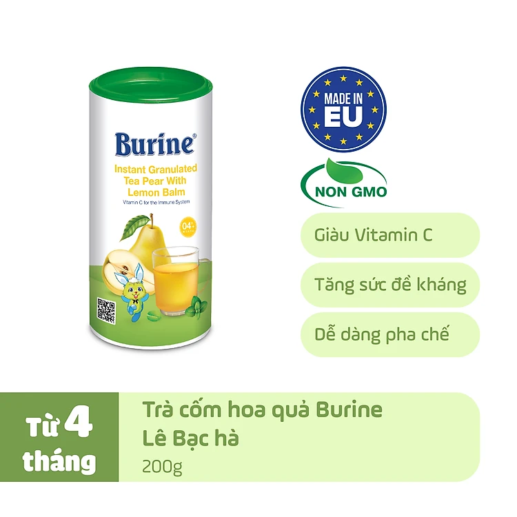 Trà cốm hoa quả Burine (HiPP) dinh dưỡng dành cho bé - Vị Lê Bạc Hà giúp giảm ho, hỗ trợ tiêu hoá khoẻ mạnh (Không dành cho trẻ dưới 4 tháng tuổi)