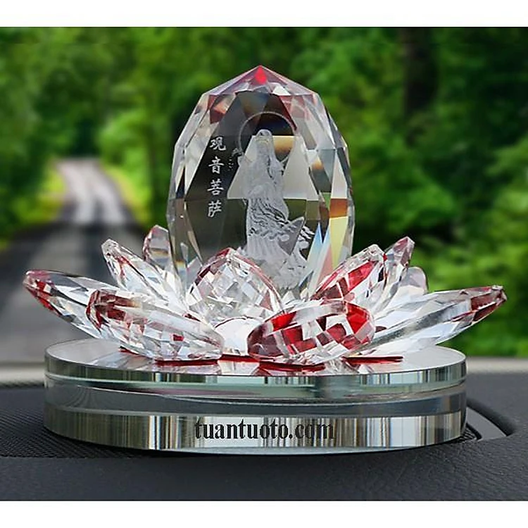 Tượng phật bà quan âm đứng trên đài sen bằng pha lê