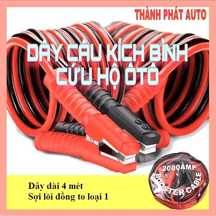 Dây Câu Kích Sạc Bình Ắc Quy Cứu Hộ Ô Tô Xe Hơi Tải 2000AMP Dài 4 Mét Lõi Đồng To Hàng Loại 1