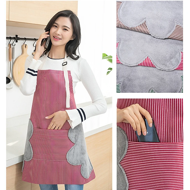 Tạp Dề Chống Thấm Nước, Dầu Mỡ Phong Cách Hàn Quốc Dễ Thương Kèm Khăn Lau Tay Chống Thấm Nước
