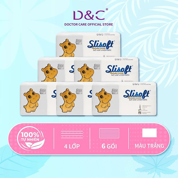 6 Bịch Giấy ăn Slisoft trắng tự nhiên đa năng, khăn giấy khô không chất tẩy trắng an toàn cho cả gia đình