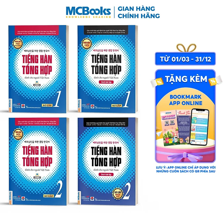 Combo 4 Cuốn Tiếng Hàn Tổng Hợp Sơ Cấp 1 và 2 Bản Màu - Học Kèm App Và Khóa Học Online