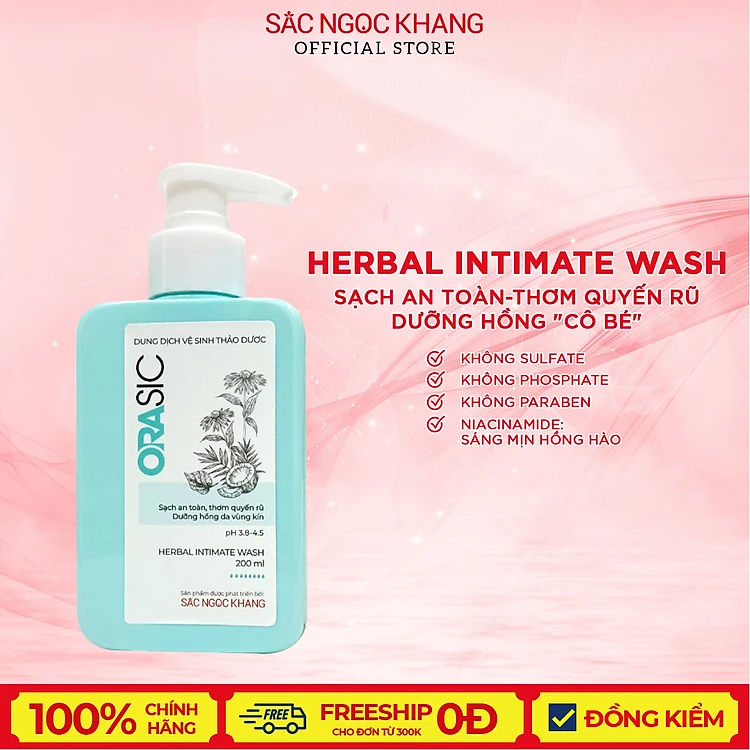 Dung dịch vệ sinh phụ nữ ORASIC Sắc Ngọc Khang 200ml với Tinh chất lá trầu không 200ml giúp làm sạch và dưỡng da "cô bé"