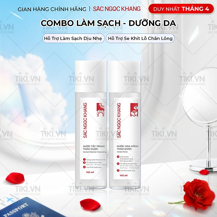 Bộ đôi làm sạch và dưỡng ẩm Sắc Ngọc Khang Nước tẩy trang 145ml + Nước hoa hồng 145ml