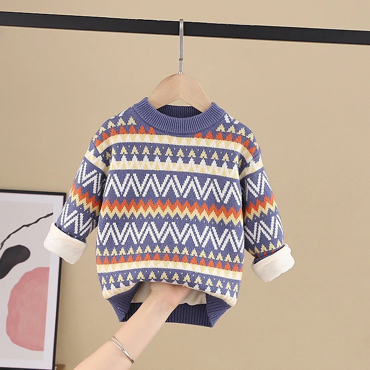 Áo len lót lông cho bé trai và gái, chất len đanh mềm, lông lót mịn, giữ ấm tốt, họa tiết vintage dễ phối đồ | MA18
