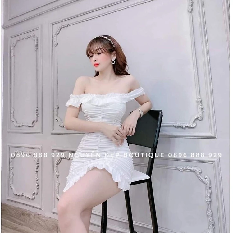 Đầm body trễ vai nhún thân kèm mút