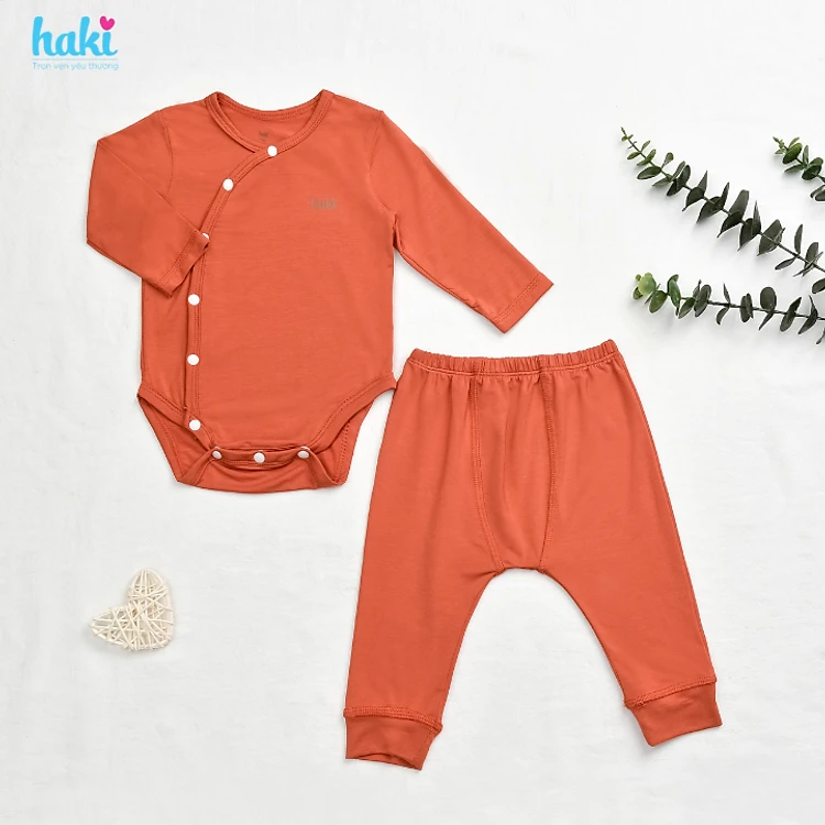 Set body chip cài lệch giữ ấm ngực dài tay kèm quần vải Bamboo (vải tre) cao cấp siêu mềm, thoáng khí, thấm hút mồ hôi cho bé HAKI - BB040