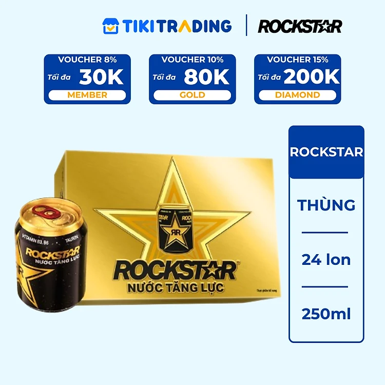 Thùng 24 Lon Nước Tăng Lực Rockstar (250ml/ lon)