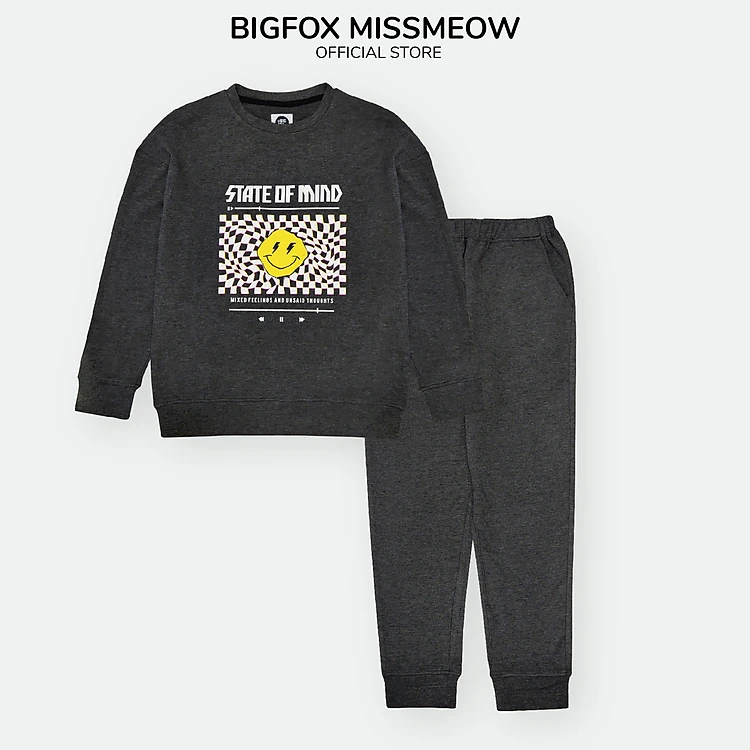 Bộ dài tay bé trai BIGFOX - MISS MEOW size đại, bộ thu đông cho bé phong cách Âu Mỹ hình in Mặt cười 41- 56kg QATE