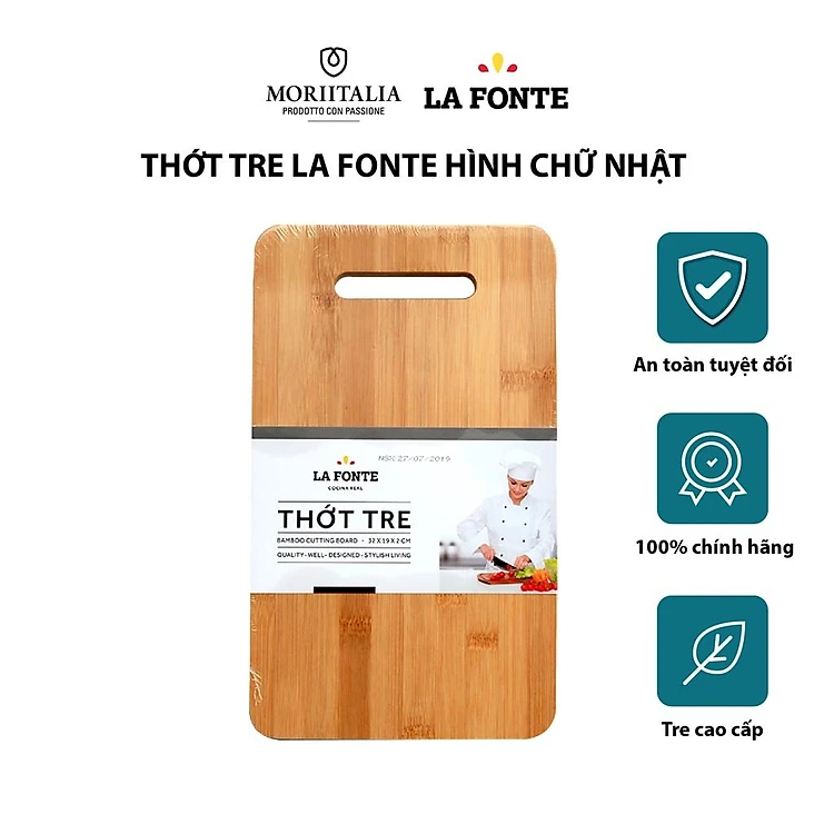 - Được làm từ nguyên liệu tre, thớt tre cao cấp La Fonte thân thiện với môi trường, có độ an toàn cao trong vệ sinh thực phẩm.