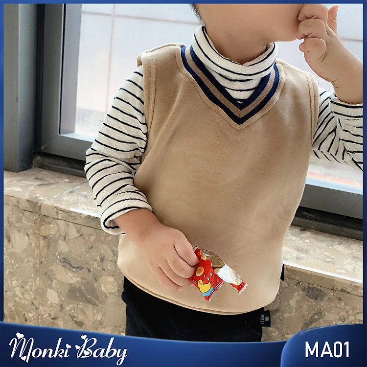 Áo gile nhung cổ tim cho bé trai bé gái, hàng Quảng Châu chuẩn, chất nhung mịn đẹp dày ấm, mẫu mới Thu Đông 2024 | MA01