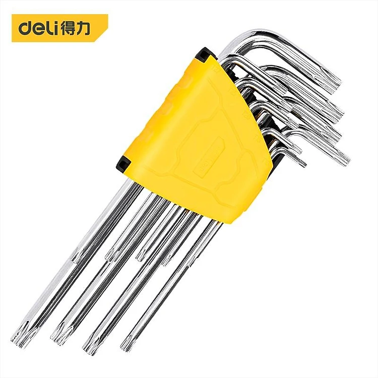 Bộ Lục Giác 9 Cây Đầu Bông Chữ L T10-T50 Deli Chính Hãng - Chất Liệu Thép Siểu Bền - Chuyên Dụng Sửa Chữa - DL3091