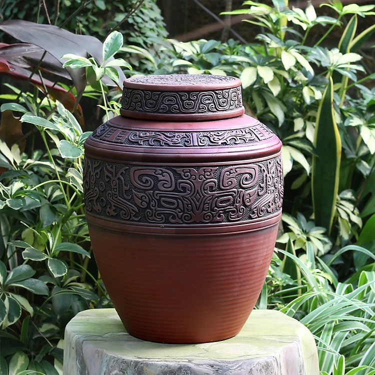 Chum sành ngâm rượu đắp nổi hoa văn cổ 10L gốm sứ Bát Tràng (bình rượu, bình ngâm rượu, chum ngâm rượu)
