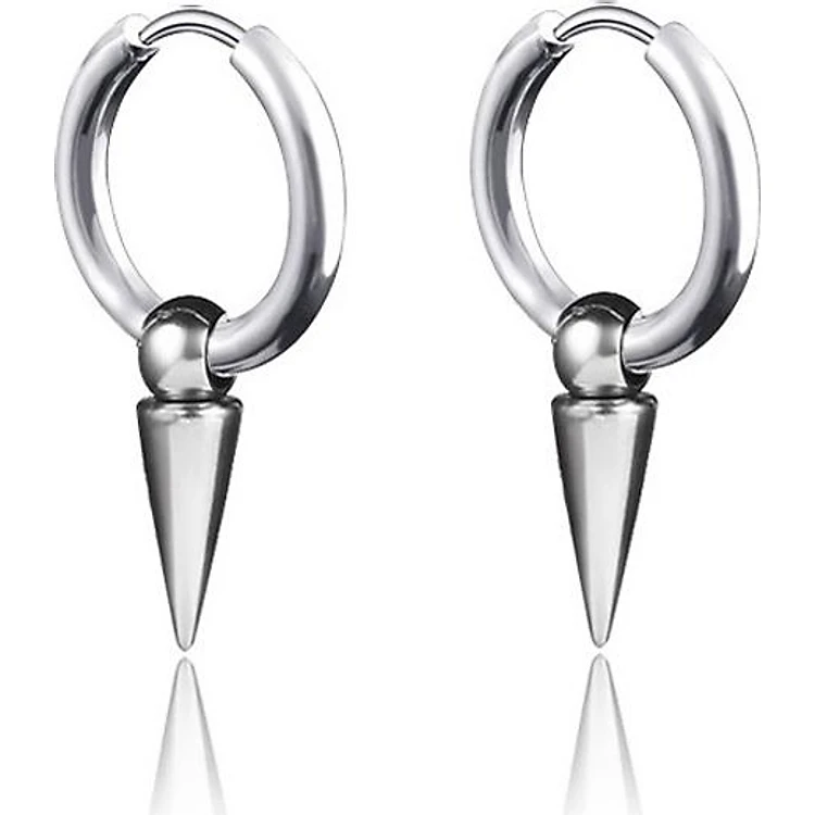 Bộ 2 bông tai nam khoen tròn mũi nhọn idol Kpop